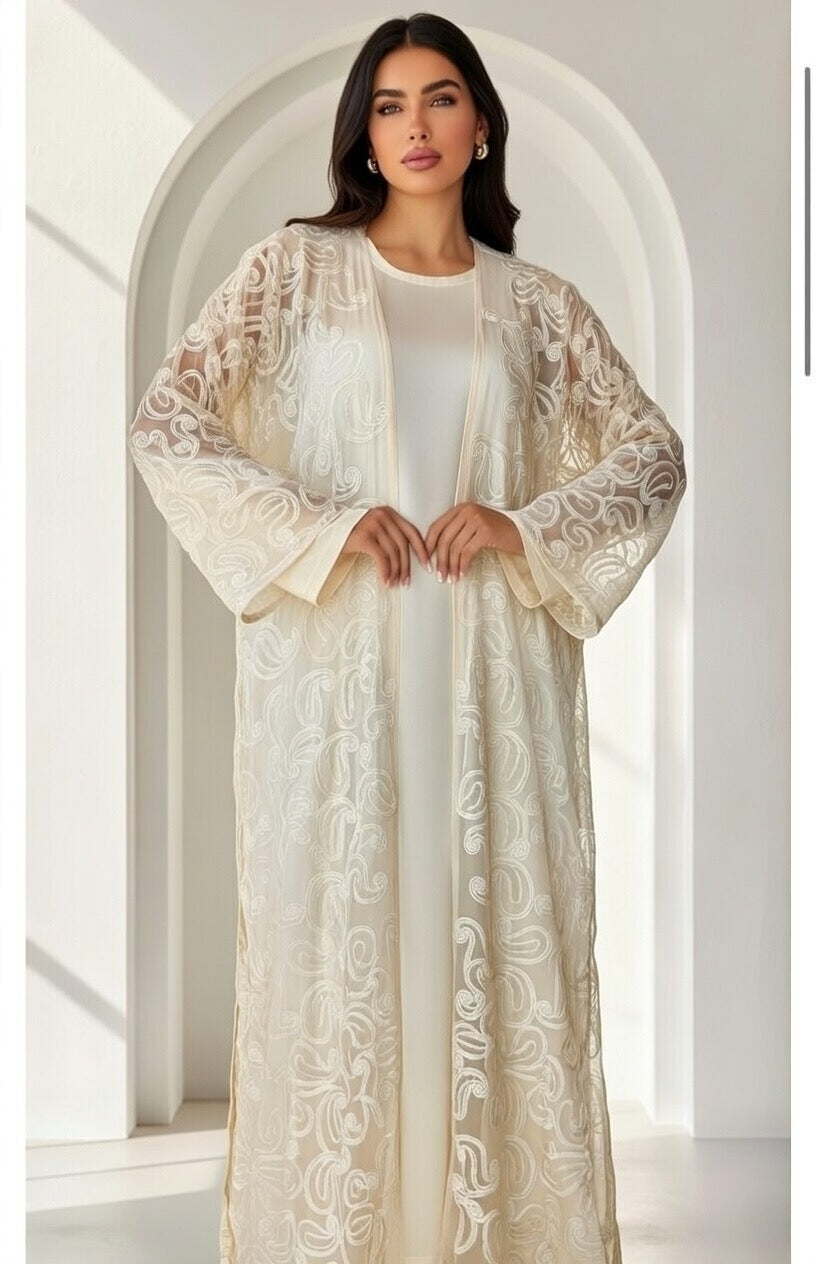- Longueur idéale : l’abaya frôle le dessus du pied