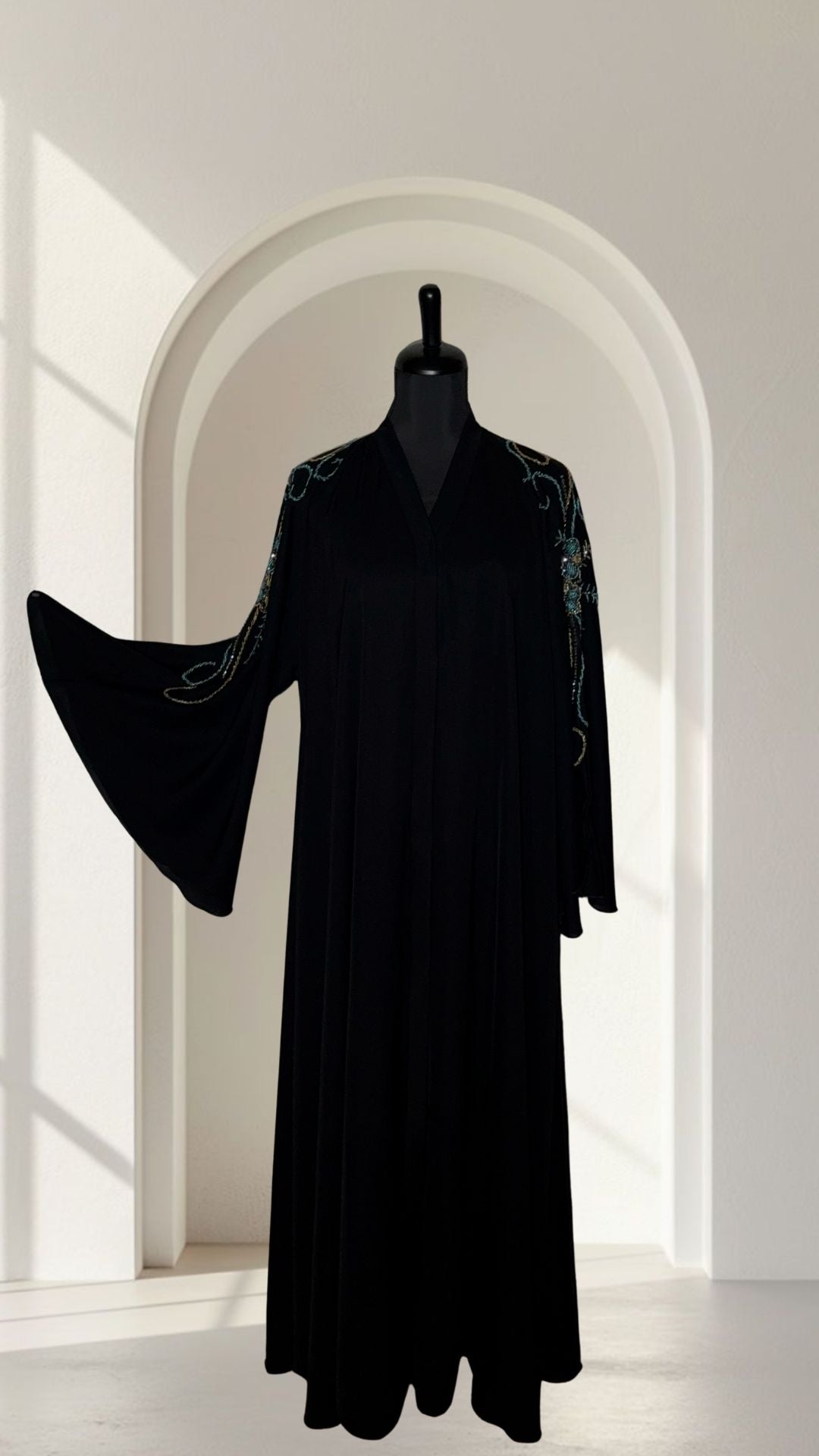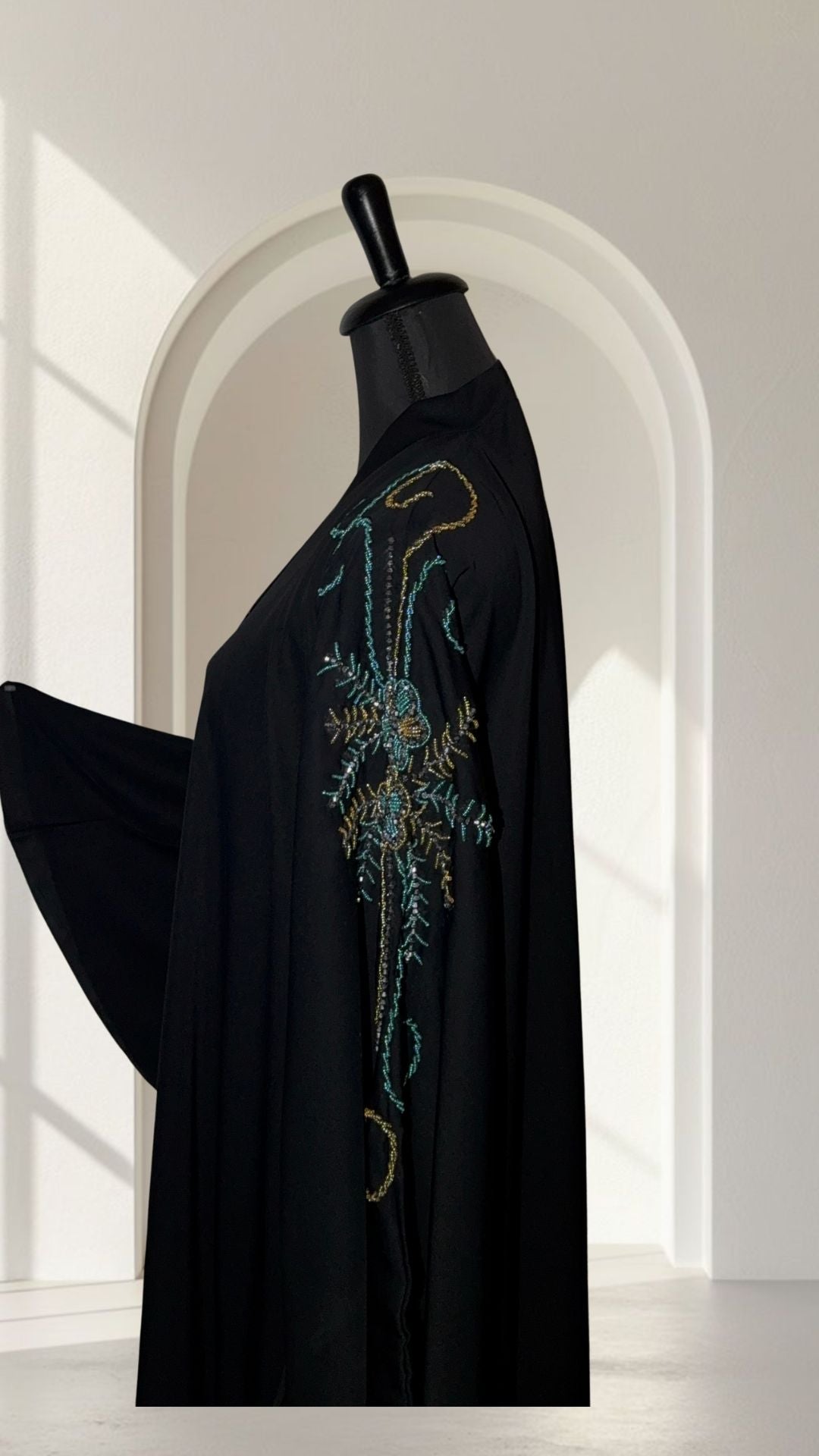 L’abaya Sabrina est une pièce élégante confectionnée en soie coréenne fluide et légère.
